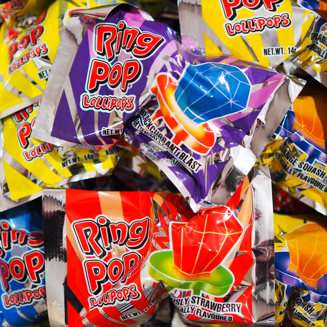 Iconic wearable lollipop ring with an enormous eye-catching candy gem that tastes as good as it looks. Bursting with delicious fruity flavour from start to finish, grab one today.