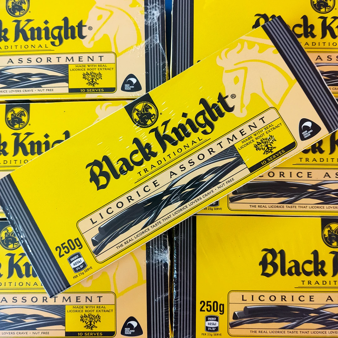 Comes in a 250gm box of licorice in a variety of shapes, twists, laces, peashooters or ribbons. There’s something for everyone.