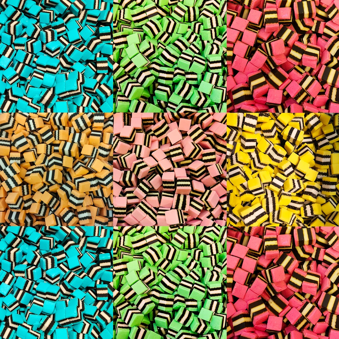Delicious Licorice Allsorts, – seperate colours for your event, theme, promo – great for treats in front of the movies or share with friends!