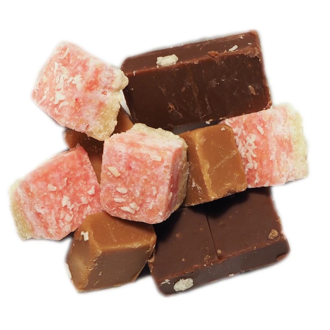 In case you cant choose we mix them for you. Chunks of Irish Cream Fudge, Chocolate Fudge, Russian Fudge and Coconut Ice…Delicious