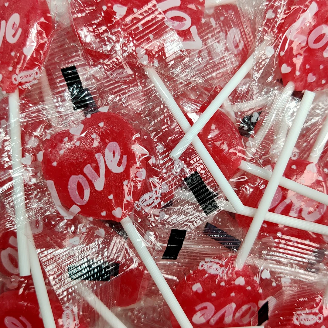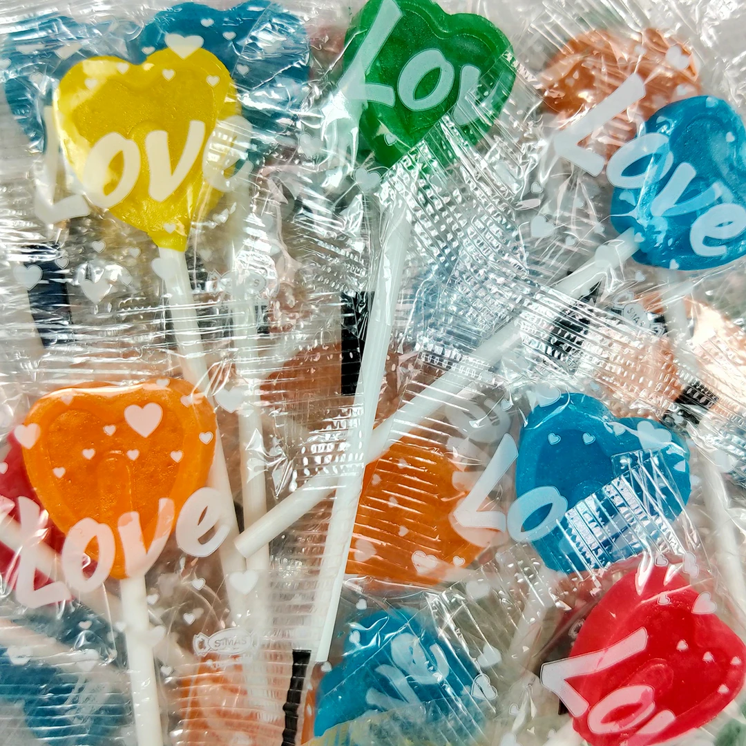 Traditional lollipops in a heart shape. Great for every occasion. A bag of 50 in either red or an assorted bag