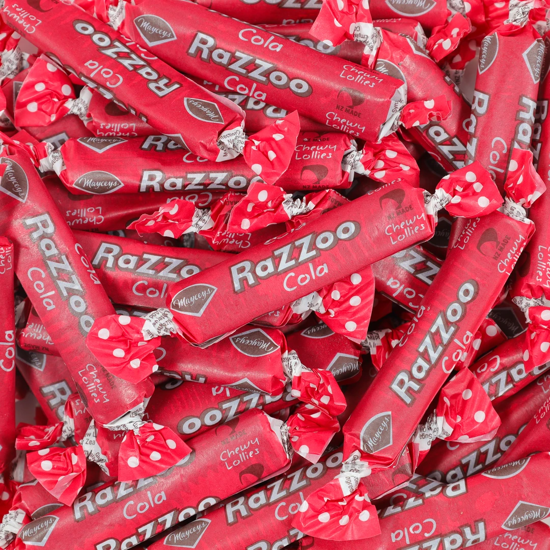 A flavoursome little chew made from NZ company Mayceys. Very popular in 4 flavours; Blue Raspberry, Grape, Cola and Strawberry.