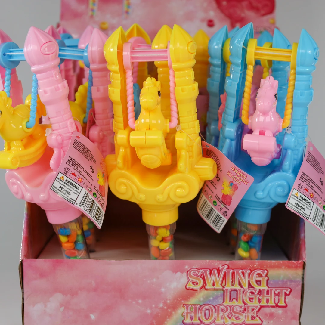 Just what every girl wants. A bright and colourful horse she can swing. The pony even light’s up sometimes ………how could you say no to an excited wee person.