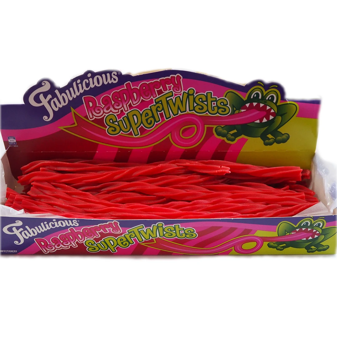 Wonka supertwist licorice is a box of delicious chewy raspberry licorice ropes. approx 38cm in length. Try stopping at one twist!